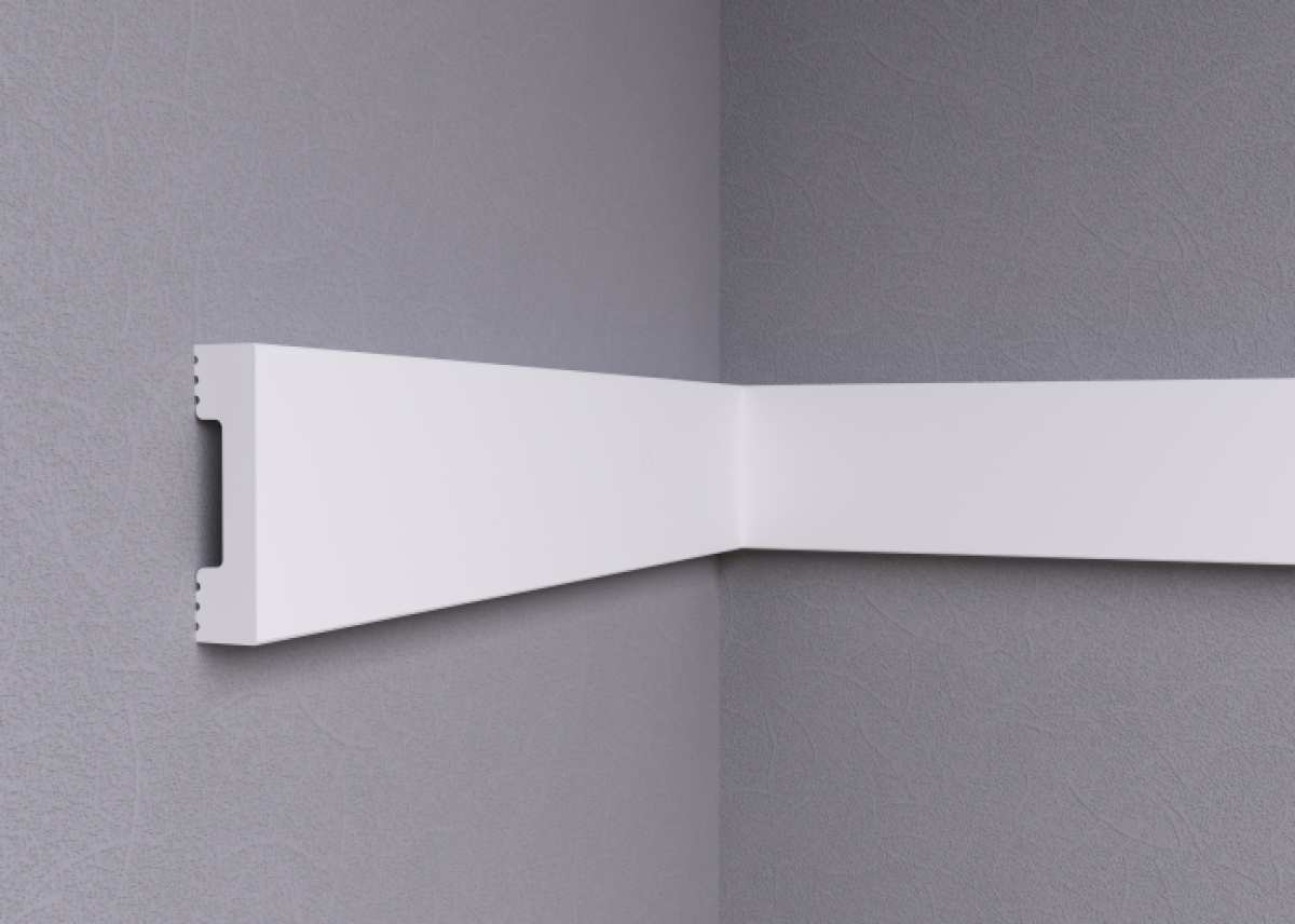 Используется для изготовления плинтусов, молдингов, декоративных элементов в интерьере. Отличается долговечностью и возможностью покраски.