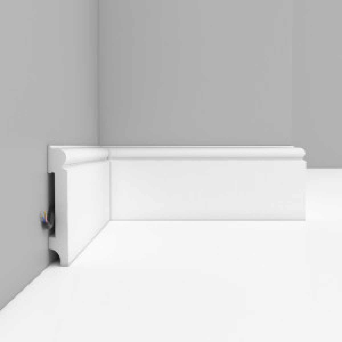 Используется для изготовления плинтусов, молдингов, декоративных элементов в интерьере. Отличается долговечностью и возможностью покраски.