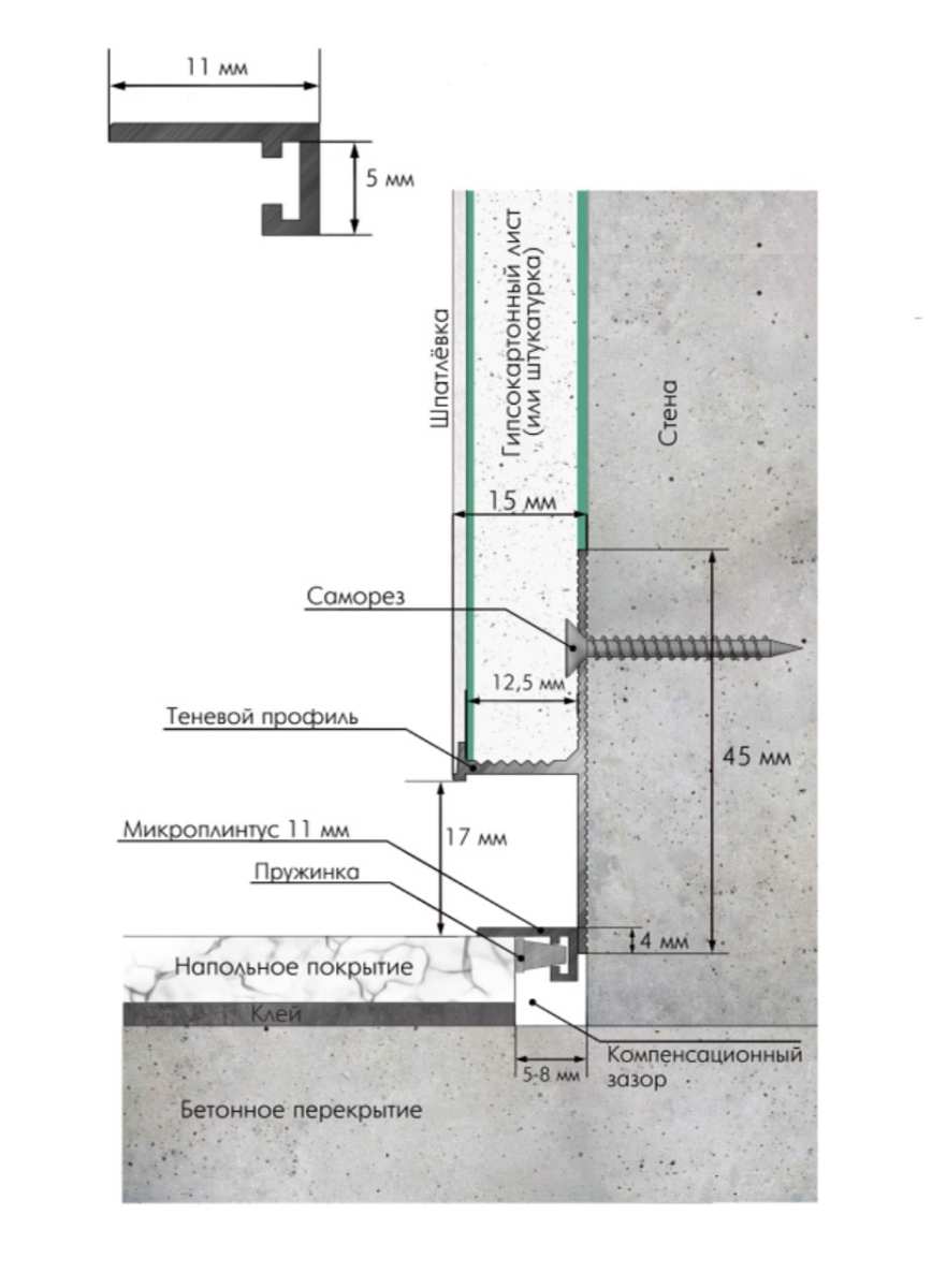 Профиль Micro-Mini имеет ширину всего 11мм. Это делает его самым незаметным профилем среди всех микроплинтусов LACONISTIQ.
