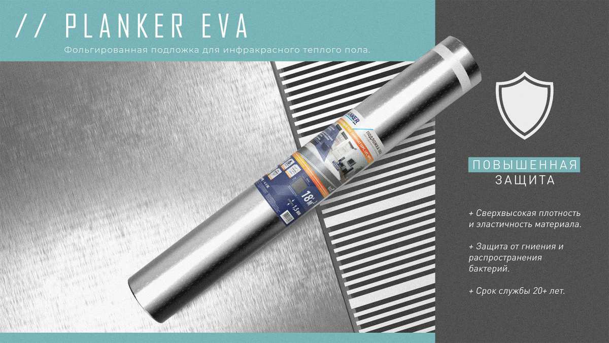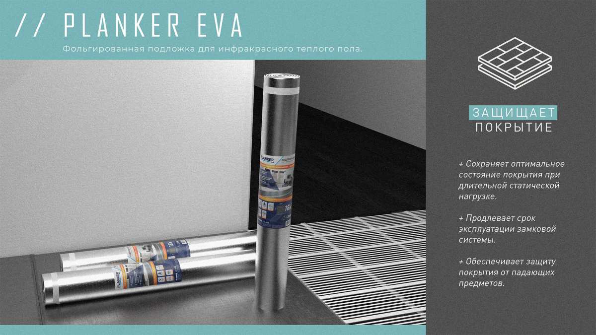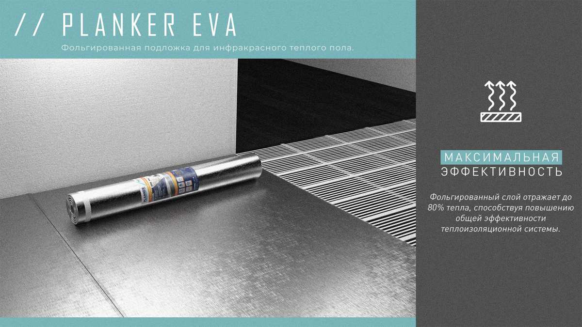 Подложка Подложка Planker EVA для инфракрасного теплого пола, рулонная 1.5 мм